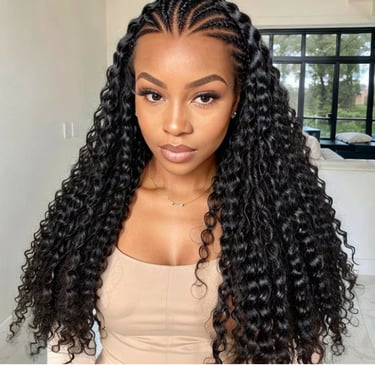 A 13x4 full frontal wig- half cornrow and half loose style