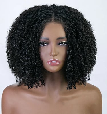 Hermosa has wigs with a 4C curly hairline that mimics the natural hair, bundles, closures, and frontals