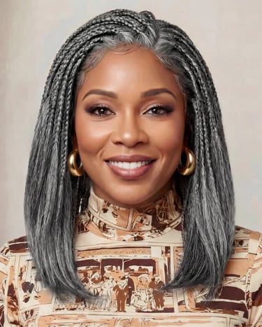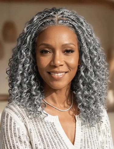 A beauty brand known for its stylish, ready-to-wear hairpieces designed to enhance confidence and everyday glam. They specialize in salt-and-pepper tones like grey and silver, offering a chic selection that celebrates natural beauty. Besides braided wigs, their collection includes drawstring ponytails, toppers, bangs, extensions, and more for versatile, easy styling.